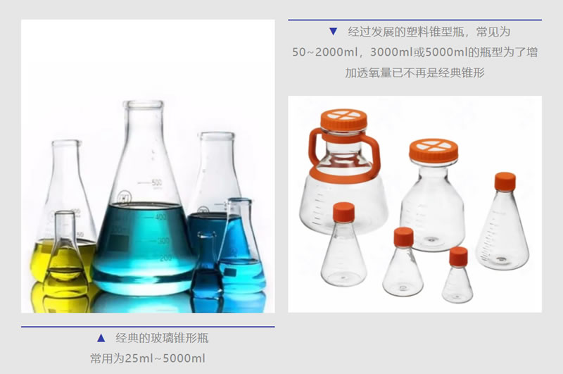 錐形搖瓶:傳統(tǒng)上是一種化學(xué)實驗室常見的玻璃儀器,德國化學(xué)家理查?鄂倫麥爾(Richard Erlenmeyer)于1861年發(fā)明。原用于滴定實驗。為防止滴定液下滴時濺出,造成實驗誤差,而由硬質(zhì)玻璃制成的縱剖面呈三角形狀,口小、底大,利于滴定過程振蕩時,反應(yīng)充分而液體不易濺出。錐形上有一圓柱形頸部,上方有一較頸部闊的開口,可用由軟木或橡膠制作成的塞子封閉。瓶身上多有數(shù)個刻度,以標(biāo)示所能盛載的容量。該容器可在水浴或電爐上加熱,因此也叫三角燒瓶,另外又名:依氏燒瓶、錐形燒瓶,鄂倫麥爾瓶等。后來錐型瓶被用于需氧類發(fā)酵培養(yǎng),逐步被用于細(xì)菌細(xì)胞的振蕩培養(yǎng),在可反復(fù)消毒清洗的玻璃瓶基礎(chǔ)上還衍生了各種塑料材質(zhì)的一次性使用的錐形搖瓶,材質(zhì)為聚碳酸酯(PC),聚對苯二甲酸乙二醇酯共聚酯(PETG),聚甲基戊烯(TPX),聚丙烯(PP)或聚四氟乙烯(PTFE)等,一般都經(jīng)γ射線滅菌。