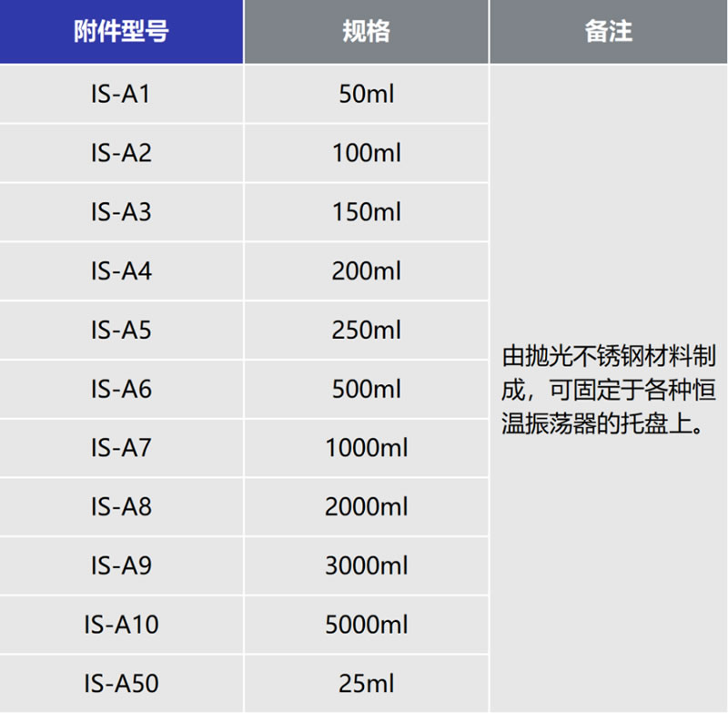 使用搖床培養(yǎng)時會用到錐型瓶、輸液瓶、試管、離心管、培養(yǎng)板等容器,來放置培養(yǎng)液進(jìn)行培養(yǎng)。為了將這些容器固定在搖床的搖板上,需要用到不同的附件來固定它們,另外,還有一些提高培養(yǎng)效率或使用方便性的附件,最近幾期我們將專門對此作介紹。(如果用戶有更多功能拓展的附件需求可以向我們反饋)