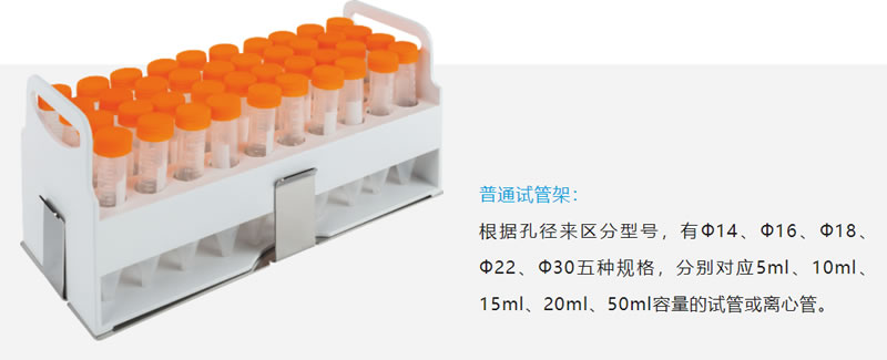 對以上各種管狀類培養(yǎng)容器,我們配備了各種試管架類附件來固定:
