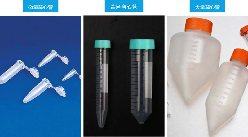 (centrifugal tube 或 centrifuge tube),管狀試樣容器,可帶密封蓋或壓蓋。容量有大量離心管(500mL、250mL)、 普通離心管(50mL、15mL)、 微量離心管(2mL、1.5mL、0.65mL、0.2mL)等,在搖床培養(yǎng)中,使用普通離心管居多,目前也逐漸有用大量離心管代替錐形搖瓶的用法,這樣后繼可以直接離心取上清液,減少錐形瓶轉(zhuǎn)離心管這道程序。