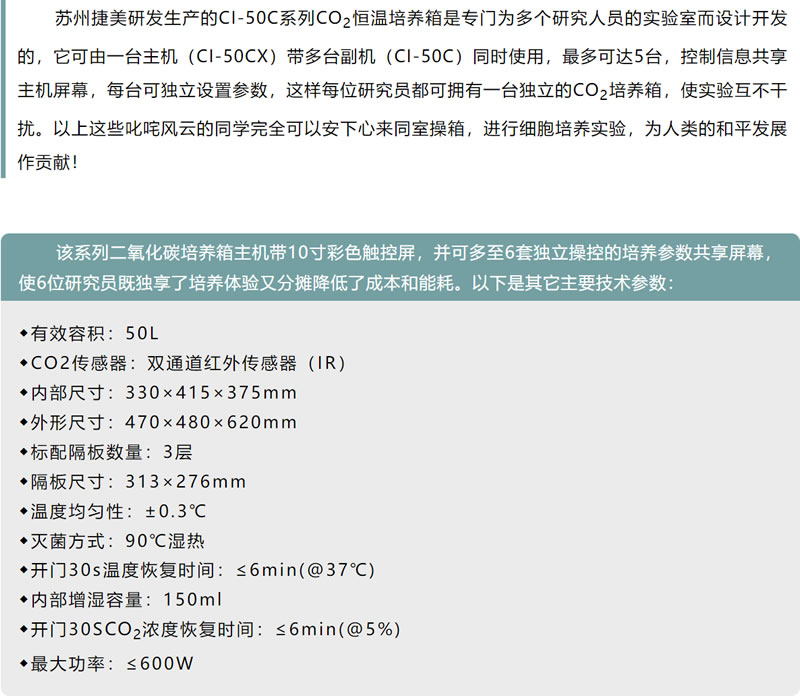 CI-50C系列主副機(jī)構(gòu)架的二氧化碳恒溫培養(yǎng)箱