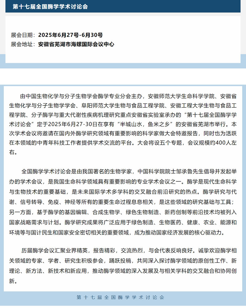 捷美/精騏有約:第十七屆全國(guó)酶學(xué)學(xué)術(shù)討論會(huì)