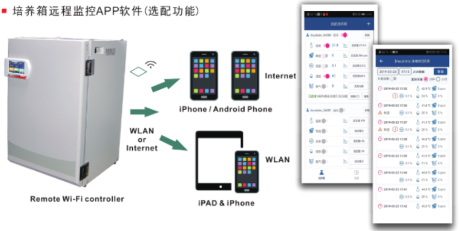→聲光報警功能:超溫報警、超速報警(選配耐二氧化碳水平搖床時)、傳感器故障報警、定時報警、開門報警、氣體濃度異常報警、濕度異常報警、無進氣報警等;