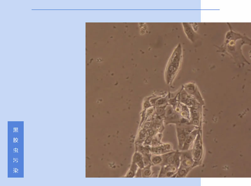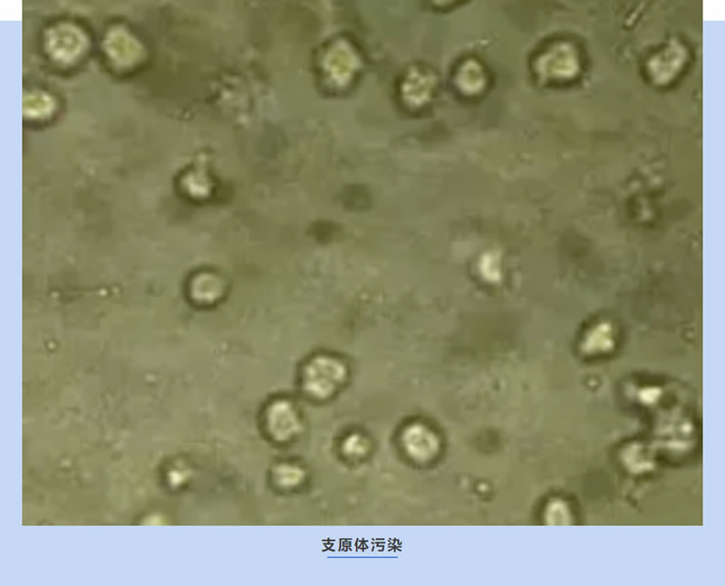 污染后培養(yǎng)液不會(huì)渾濁,在高倍鏡下可觀察到細(xì)胞間有黑色顆粒在原地進(jìn)行“布朗運(yùn)動(dòng)”,像小蟲游來游去。隨著污染加重,被污染的細(xì)胞生長(zhǎng)緩慢,細(xì)胞狀態(tài)差,空泡化嚴(yán)重,甚至還可能導(dǎo)致細(xì)胞形態(tài)的改變。污染源主要來自于血清,如果出現(xiàn)污染,更換血清。